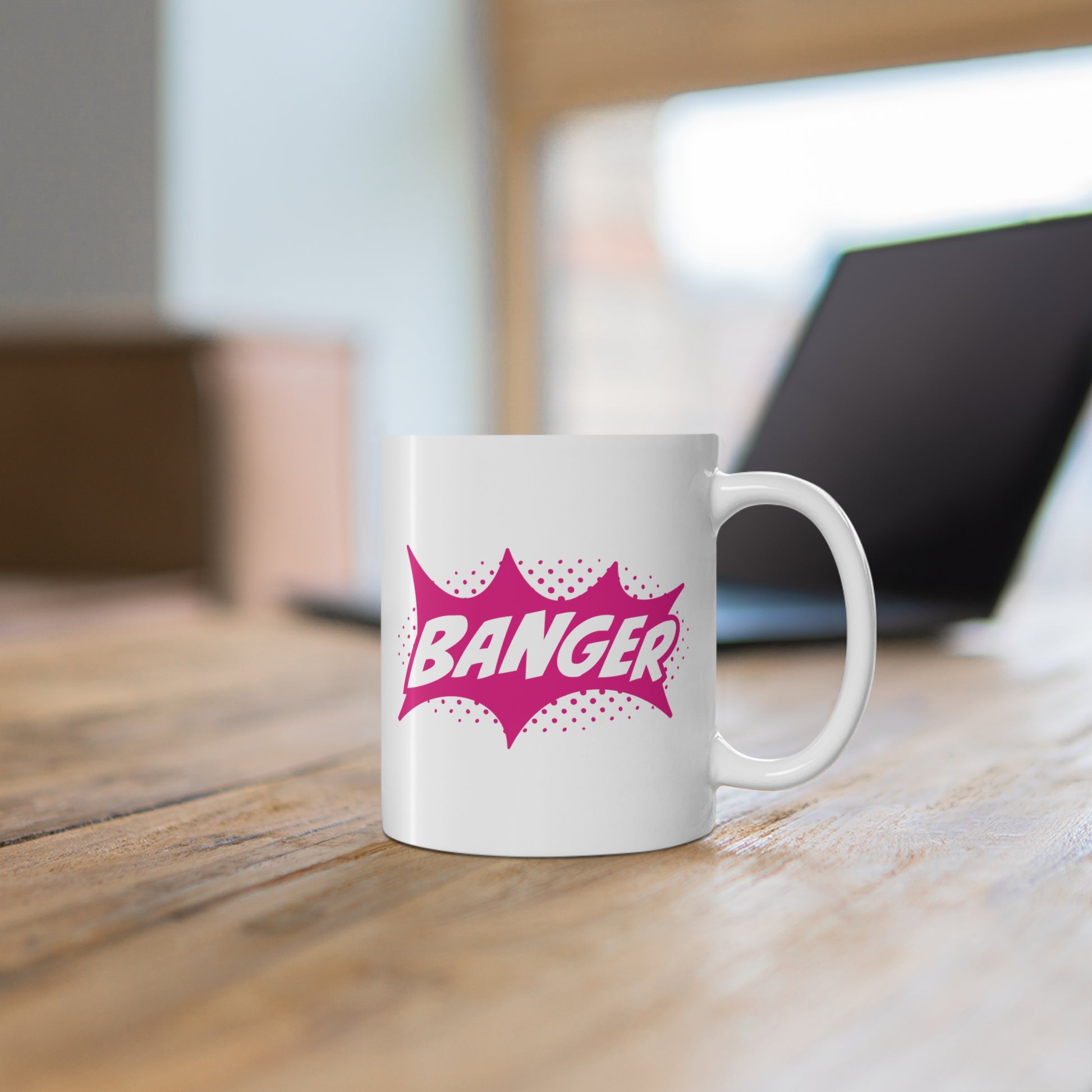 This ain't just any mug—it's a glossy white BANGER with a loud pink comic book-style graphic that pops harder than your favorite meme. Bold "BANGER" text slaps. It's screaming: "I’m here for the big wins in life." Perfect for coffee, tea, or whatever keeps your grind going. Whether you’re chilling solo or flexing with the crew, this mug brings the energy for anyone who loves to celebrate the good stuff. Gift it for birthdays, holidays, or just to vibe with someone who gets it. Microwave-safe for quick reheats, dishwasher-safe for easy cleanup—practical but with straight-up style.